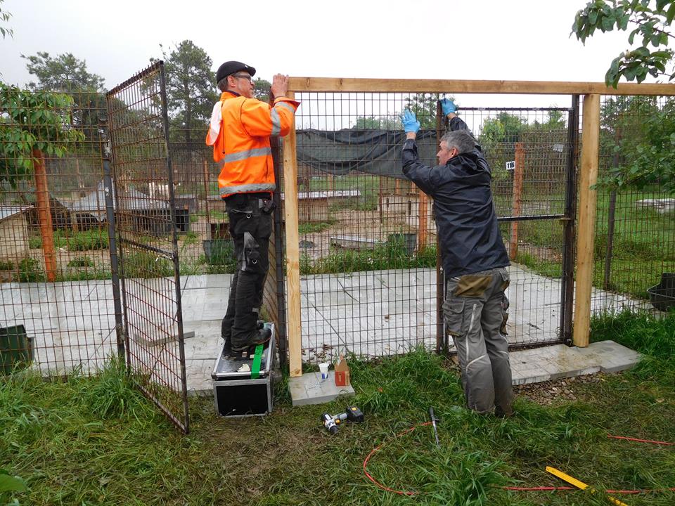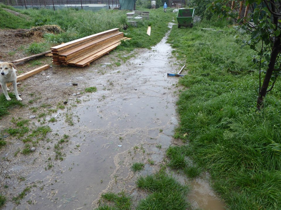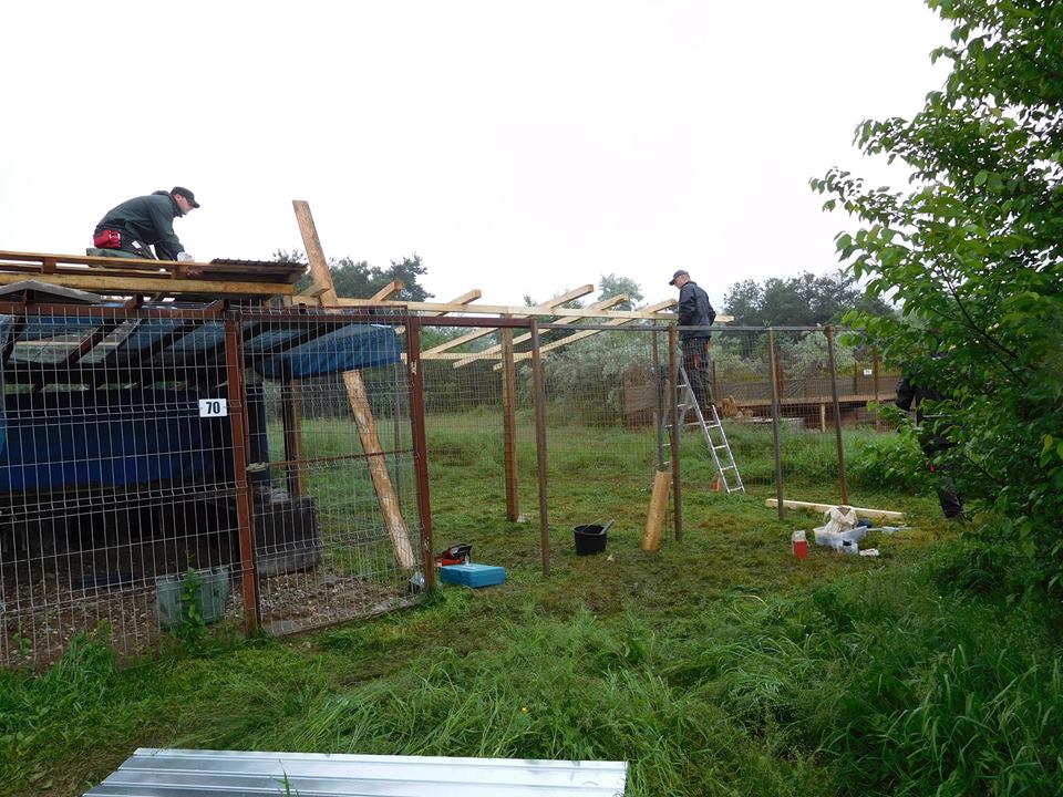 Dennoch war es für uns ein erfolgreicher Tag. Denn die Baumaßnahmen sind weiter fortgeschritten. Die neuen Welpenzwinger wurden fertig und sind mit Platten ausgelegt, und auch mit der Überdachung wurde begonnen. Auch die neuen Zwinger für Mihaela konnten wir heute fertigkaufen und unser Alfons hat das Ständerwerk fertiggestellt. Rene hat die Dacheindeckung in Abstimmung mit Alfons hinterher montiert. Es wurde Hand in Hand gearbeitet. Somit haben wir heute rund 50 Ploiesti Hunden einen trockenen Platz schaffen können.