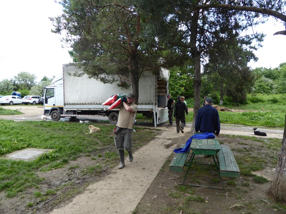 Heute wurden erfreulicherweise zudem 3 Tonnen neues Futter für die Hunde angeliefert, auch das musste aus dem LKW ausgeladen werden, da weit und breit kein Lagerangestellter zu sehen war, haben wir unsere Arbeit unterbrochen und den LKW ausgeladen.