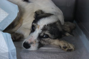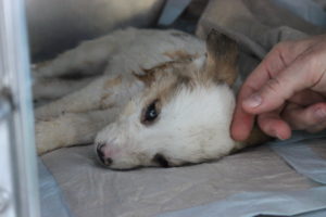 Kurz bevor wir uns verabschiedet haben, um in die Pension zurückzufahren, brachten wir noch einen kleinen schwachen Welpen in die Krankenstation, denn er kam in seinem Zwinger gar nicht ans Futter und schien uns ein wenig kränkelig… Er hat eine extra Portion Nassfutter bekommen und liegt nun weich und warm. Wir schauen morgen, wie es ihm geht…