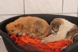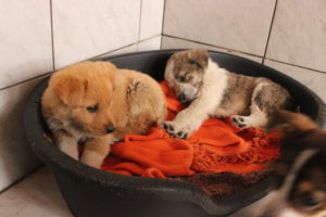 Heute Nachmittag / Abend wurden leider wieder Welpen im Tierheim abgegeben. Einmal war die Mama mit dabei, bei 5 anderen Welpen wurde keine Mutter gefunden. Ein Mann, den Mishu auch kennt und der selber einige Straßenhunde versorgt, hat sie auf der Straße gefunden und sie zu uns gebracht. Alle sind versorgt und haben ein Plätzchen gefunden, aber aktuell ist nun alles wirklich pickepacke voll…