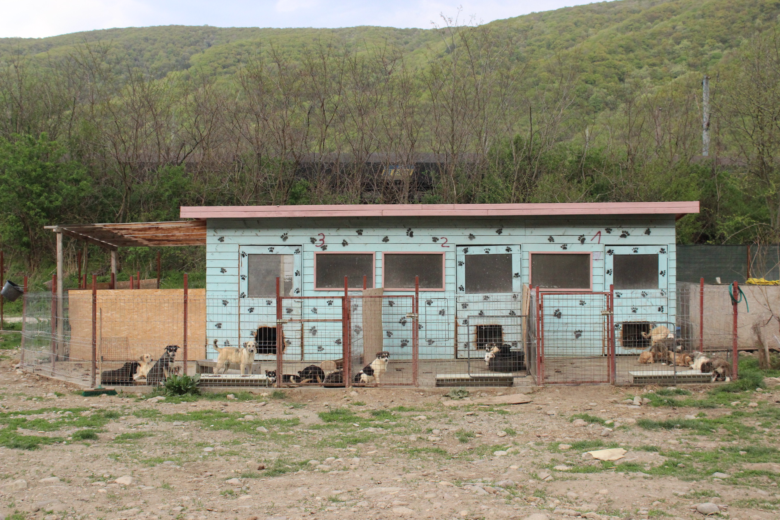 Am Vormittag haben wir den Hunden im Eckzwinger endlich ihre Hütten gebracht und alle alten Hütten gecheckt und auf Paletten gestellt. Die Zwingeranlage ist nun gut ausgestattet und die Hunde können den Sommer dort gut verbringen.