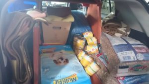 Das Auto war gefüllt mit Trockenfutter, Nassfutter, Decken, einer Hundehütte, Katzentoiletten uvm.
