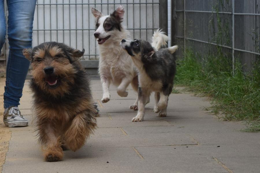 Schaut mal, wie glücklich und neugierig die neun neuen Schützlinge aus Rumänien beim Hamburger Tierschutzverein sind !