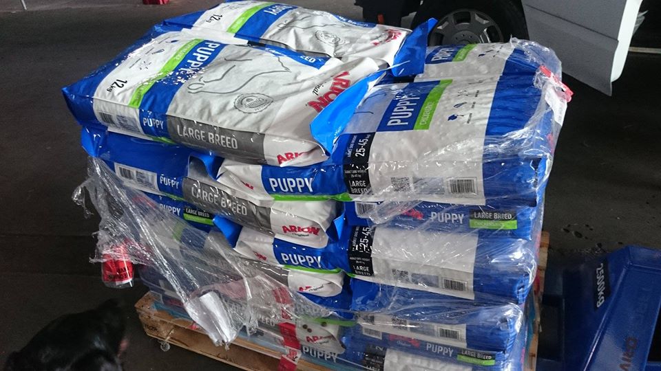 Zu dem Welpenfutter aus unserem Lager in Karlsruhe gesellten sich noch etliche Spenden wie Hundefutter, Katzenfutter, Decken, Handtücher, Leinen/Geschirre, Kratzbäume, Plastikwannen, eine Hundehütte uvm.