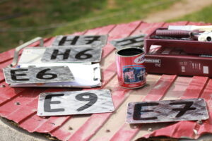 Als wir alles soweit geschafft hatten (zwei Welpenkennels kommen morgen dran), haben wir uns der heutigen Hauptaufgabe gewidmet. Wir wollten die B- und C-Kennels deutlich luftiger gestalten und die neuen Kennels neu nummerieren, weil dies noch nicht geschehen ist und die Zuordnung der Hunde fest daran gebunden ist. Gogu hat mir richtig gute Metallschilder gemacht und mit Lackfarbe habe ich nun alles nummeriert. Die Schilder sind super haltbar nun und überleben vermutlich uns alle zusammen.