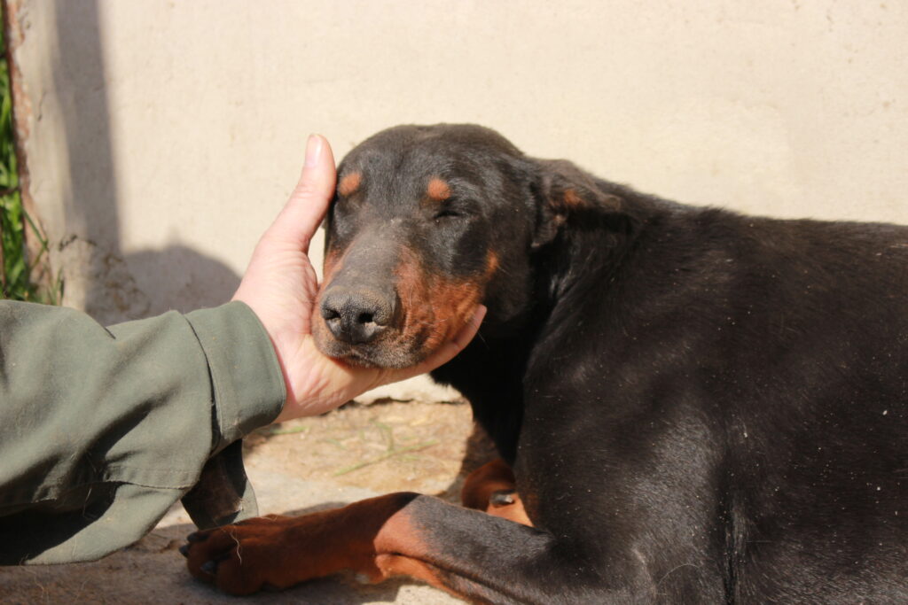 Sein Hals war komplett geschoren, dicke Wunde waren zu sehen, manche noch offen. Er war in eine schwere Beißerei vermittelt und erholt sich langsam…Leider mag ANTII den Menschen nicht so sehr und die Behandlung war eine ziemliche Mammutaufgabe….Er wohnt nun unter anderem bei der Dobermann Hündin Lilac, die wir euch heute als Notfall vorgestellt haben…