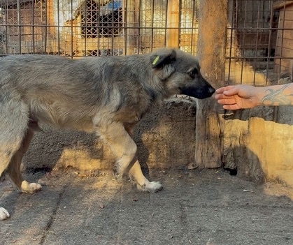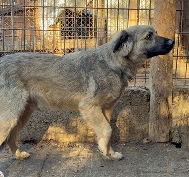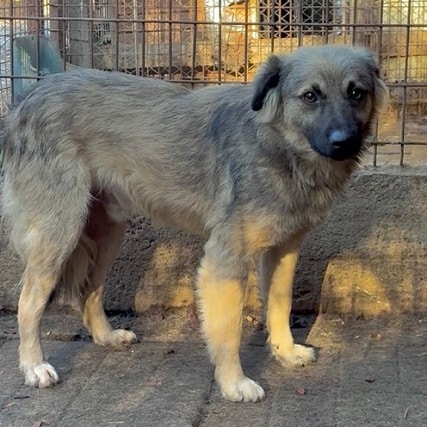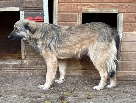 Der hübsche Rüde ließ sich in der Hütte bedrängen und den Chip auslesen. Weiteres quittierte er mit einem angetäuschten Abschnappen. In verständigen Händen und mit Geduld sollte er Vertrauen aufbauen können. Hier wird das vermutlich eher verstärkt werden.