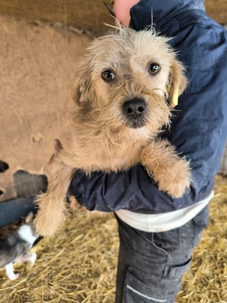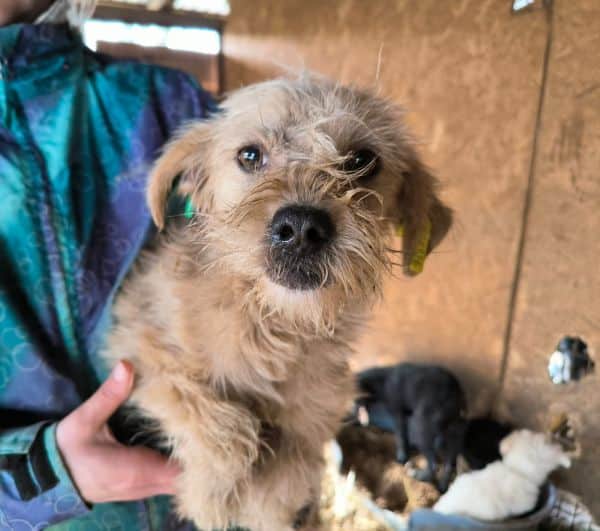 Diese junge Hündin ist neu im Shelter und noch situativ überfordert. Auch der ganze Trubel in ihrem Kennel, in dem sich viele Welpen und Junghunde befinden, macht ihr zu schaffen. Sie kam nicht aktiv auf uns zu, sondern suchte Schutz bei anderen vermeintlich souveräneren Hunden. Dort ließ sie sich aber problemlos überall anfassen und sogar auf den Arm nehmen. Genießen konnte sie das nicht, ließ es aber tapfer über sich ergehen. Als wir sie auf dem Boden absetzten, verharrte sie noch kurz bei uns, wollte dann aber einen unachtsamen Moment nutzen, um sich langsam und unbemerkt von uns zu entfernen.