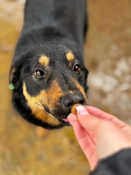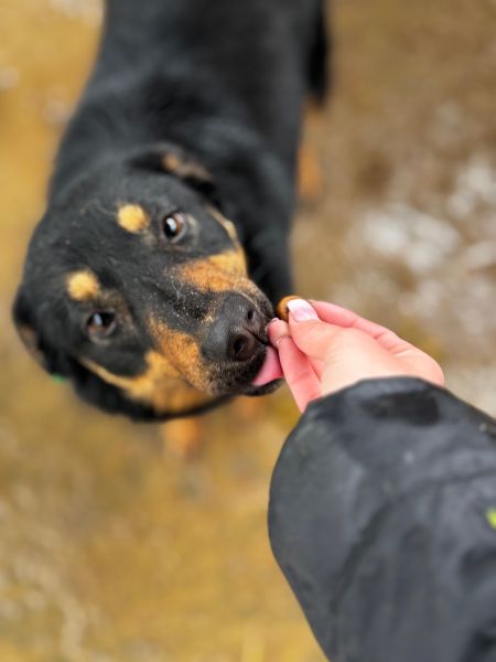 Sie wird sicherlich nur eine kurze Zeit brauchen um richtig aufzutauen. Unsere Leckerlis nimmt sie gern. ADRIANA hat so viel Potential, wer sieht es?!