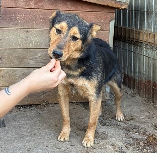 Unser bildhübscher AIDAN mit den tollen Ohren und dem seidigen Fell hofft inzwischen seit 1,5 Jahren vergeblich im riesigen Shelter auf seine Chance. Dabei ist er so ein süßer Bub, der uns erneut aus Unsicherheit erst einmal verbellte. Auch dieses Mal nahm er gern die mitgebrachten Leckerlie aus der Hand. Wenn wir uns weiter annäherten, wurde AIDAN etwas schüchtern und wich zurück. Den direkten Kontakt zu uns kennt er einfach nicht so gut – und dennoch ließ er es schließlich zu, dass wir ihn streichelten. Etwas überrumpelt von dieser intensiven Nähe machte AIDAN es jedoch ganz fein mit.