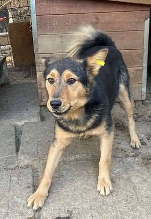 Der hübsche AIDAN verbellte uns als wir vor seinem Kennel standen. Als wir dann eintraten, ging er erstmal hinter die sichere Hütte. Erstmal wollte er schauen, was wir da so machen. Als wir ihm ein Leckerchen hinwarfen, war dann das Eis schnell gebrochen und er kam neugierig zu uns. Gerne nahm er unsere Leckerchen aus der Hand. Man merkt ihm aber an, dass er im direkten Kontakt unsicher ist. In einer anderen Umgebung bei erfahrenen Menschen, die ihm Zeit zur Eingewöhnung geben und zusammen mit ihm Vertrauen aufbauen, sollte er noch gut auftauen.