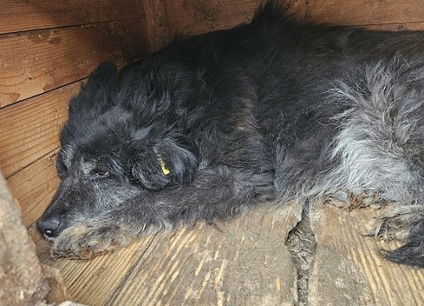 Aidana scheint fast am Ende ihrer Kräfte zu sein. Wir fanden sie teilnahmslos in der Hütte vor. Ihre Augen haben das Leuchten verloren. Resigniert lebt sie Tag für Tag vor sich hin. Für die hübsche Dame wird es nun wirklich dringend Zeit, das Shelter zu verlassen. Lange hält sie nicht mehr durch. Ihr Fell wirkt stumpf und verfilzt, die Krallen viel zu lang. Wirklich bewegen tut sich die süße Maus nicht mehr, wahrscheinlich hat sie auch Schmerzen in den Gelenken durch ihr Übergewicht. Wieder konnten wir sie in der Hütte streicheln und ihr mit ein paar Leckerchen etwas Abwechslung vom tristen Alltag bereiten. Doch Aidana braucht mehr als ein paar Minute mit uns, um wieder strahlen zu können.