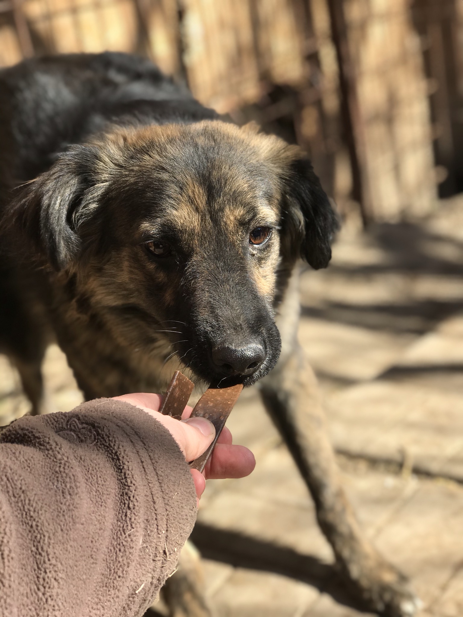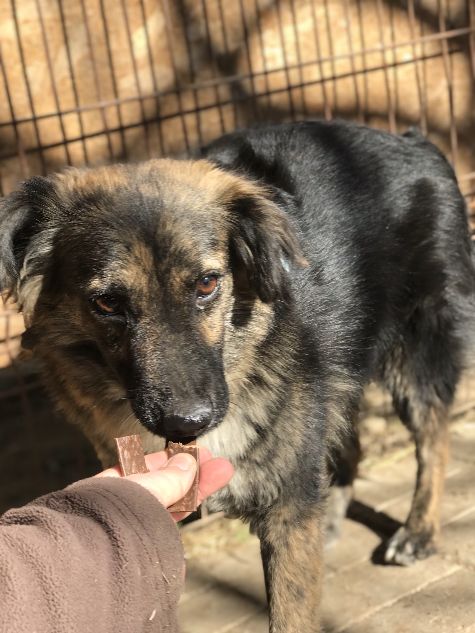 Als Welpe und Junghund war AJAX ein richtiger Sonnenschein, total offen und zutraulich. Leider hat sich dies nach vielen Monaten ohne ausreichend Kontakt zu Menschen sehr geändert. AJAX ist schüchtern geworden und möchte nicht angefasst werden. Wenn man ihm etwas Zeit gibt, sucht er jedoch auch die Nähe und nimmt Leckerchen aus der Hand.