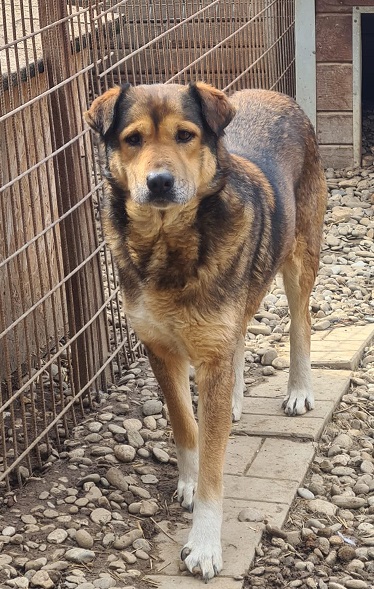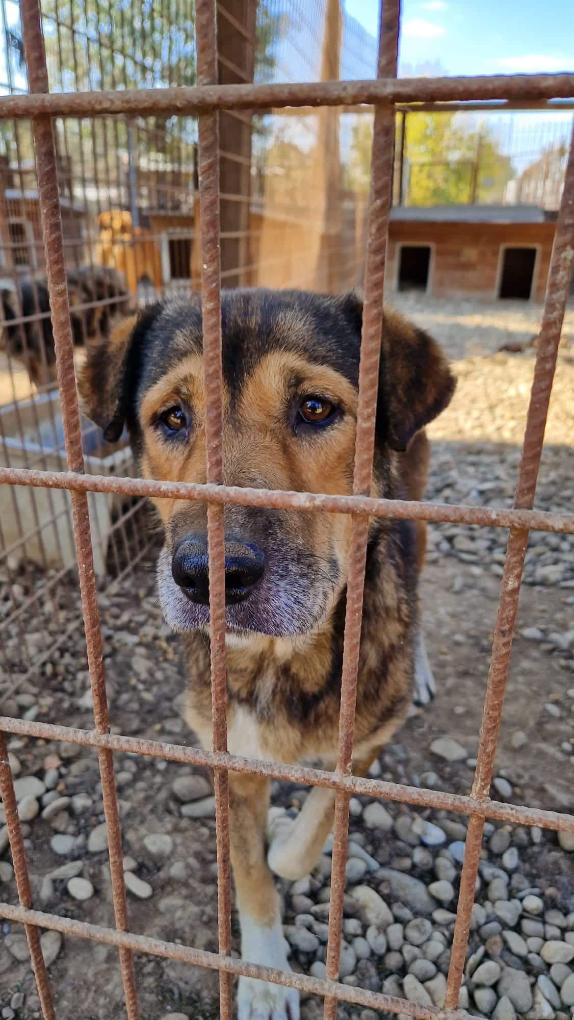 AKAI ist ein freundlicher und eher zurückhaltender Rüde. Bei unserem Besuch hatte der liebe Kerl eine Zecke über dem Auge sitzen, daher hat er extra Zeckenmittel erhalten. Uns gegenüber zeigte er sich trotzdem neugierig, nahm Leckerlies aus der Hand und ließ sich dabei vorsichtig an der Schnauze streicheln. Wir mussten außerdem erneut die Krallen an der deformierten Pfote schneiden. Nachdem wir ihn fixiert hatten, hat er es gut mitgemacht, er war in keinem Moment nach vorne gerichtet, sondern immer passiv. Genießen konnte er die ungewohnte Nähe noch nicht. Mit viel Zeit, Geduld und Einfühlungsvermögen wird auch hoffentlich bald dieser Langzeitinsasse seinem einsamen Kennel verlassen und ein eigenes Körbchen bei einer Familie finden. AKAI sitzt momentan alleine in einem Kennel.