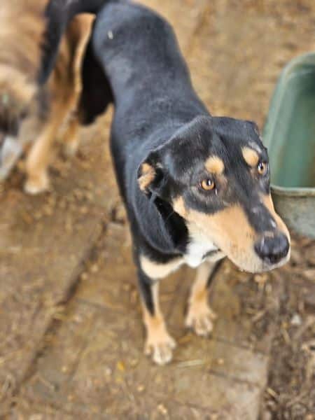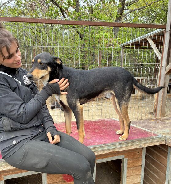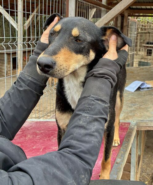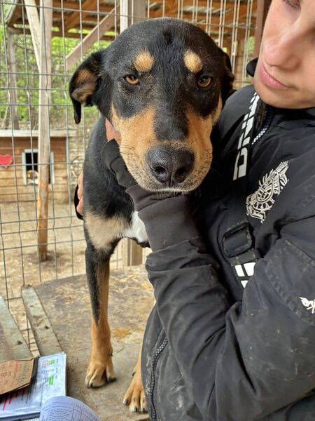 Dieser zutrauliche Rüde freute sich sehr über unseren Besuch und war sofort bei uns. Er ließ sich gerne von uns streicheln und genoss unsere Streicheleinheiten. Eine willkommene Abwechslung in dem sonst so trostlosen Shelteralltag, wo niemand für ihn Zeit hat. Ein toller Kerl! Mit den anderen Hunden im Kennel war er verträglich.