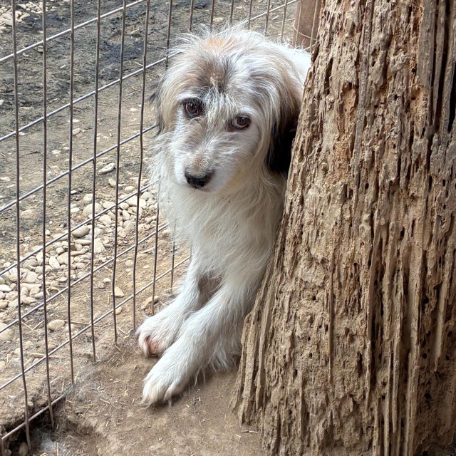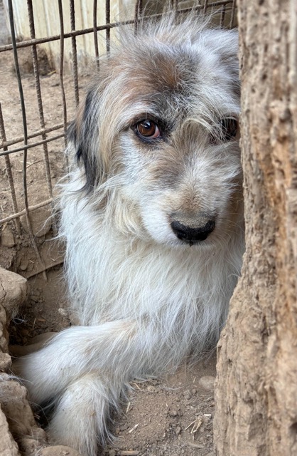 Unser süßer ALJOSCHA hofft mittlerweile seit 4 unvorstellbar langen Jahren vergeblich im riesigen Shelter auf seine Chance. Bei diesem Besuch lag der hübsche Hundemann hinter einem Baum und unser Besuch schien ihm nicht ganz geheuer. Behutsam ließ ALJOSCHA sich über den Rücken streicheln und machte sich dann langsam und bedacht auf den Weg in eine sichere Hütte. Dem sensiblen Bub fehlt einfach die regelmäßige Erfahrung im direkten Umgang mit uns, denn ALJOSCHA hat in all der Zeit nie die Chance gehabt, Vertrauen zu lernen. Wir hoffen, dass er nun endlich von erfahrenen und verständigen Menschen gesehen wird, die ihn an die Pfote nehmen und Stück für Stück an ein Zusammenleben auf der Sonnenseite heranführen. Ein netter Ersthund würde dem verträglichen ALJOSCHA die Eingewöhnung sicher sehr erleichtern.