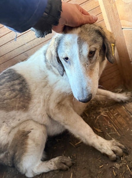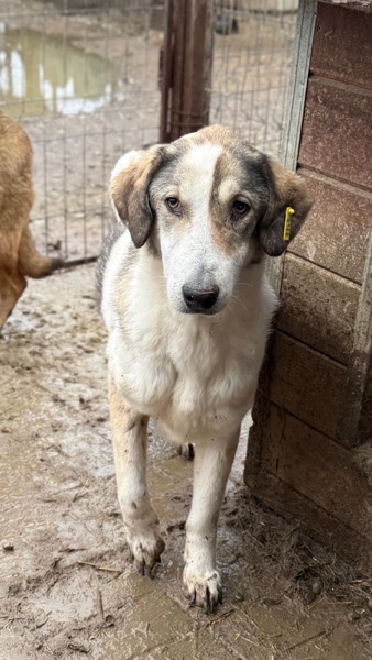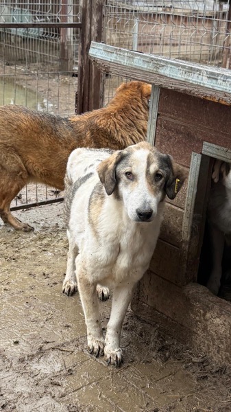 Amalia ist eine zurückhaltende Hündin, die sich bei unserem Besuch nicht von selbst aus ihrer Hütte traute. Wir mussten sie vorsichtig herauslocken. Dabei wurde schnell klar, wie verunsichert sie – wie auch viele andere Hunde in ihrem Kennel – durch die angespannte Atmosphäre im Shelter ist. Trotz ihrer Unsicherheit blieb Amalia eher ruhig und wird nicht panisch. Sie zog sich lieber zurück, anstatt in Stresssituationen kopflos zu reagieren. Sobald sich die Hunde in ihrem Kennel außerhalb der Hütte zeigen, werden sie von den Hunden in den angrenzenden drei Kenneln lautstark verbellt und bedrängt. Dieser ständige Stress setzt Amalia spürbar zu und lässt kaum Raum für Entspannung oder Vertrauen. In ihrer eigenen Hundegruppe zeigt sich Amalia verträglich.