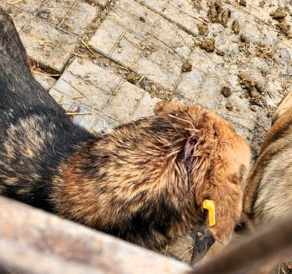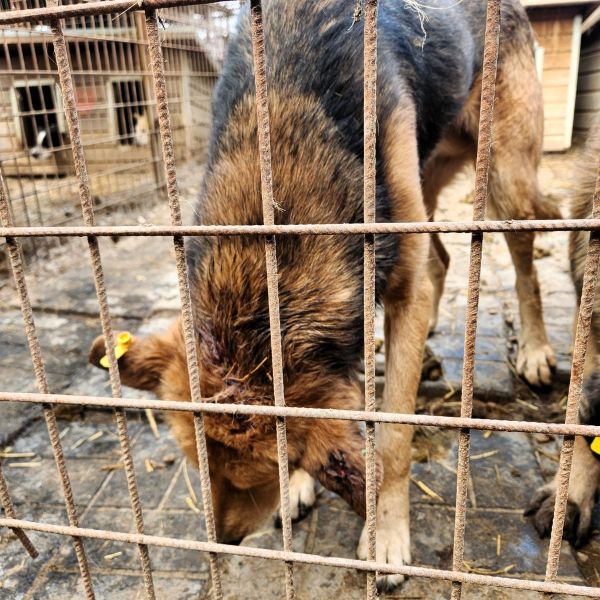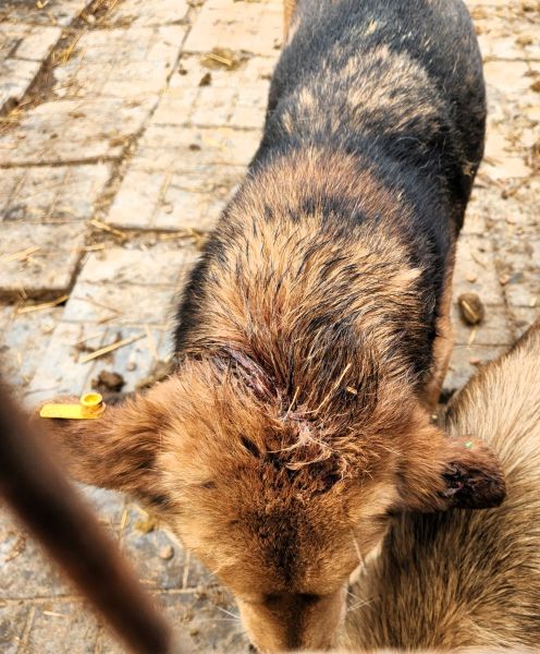Den zauberhaften AMANI dürfen wir schon seit seiner Ersterfassung im Herbst 2024 eine ganze Weile begleiten. Bereits bei unserem letzten Besuch fiel uns auf, dass ihm das Shelterleben zusetzt, nicht zuletzt da er sich mit einem dominanten Rüden im Kennel befindet, der ihn schwer an Wasser und Futter kommen lässt. Da sich der tolle Kerl mit seiner ruhigen Art ganz besonders in unser Herz geschlichen hat, waren wir besonders erschrocken, als wir ihn diesmal mit einer eitrigen Bisswunde an Kopf und Ohr vorfanden. Leider durften wir aufgrund des dominanten Rüden den Kennel nicht betreten, sodass wir ihn durch das Kennelgitter vorsichtig streichelten. Er schmiegte sich vorsichtig an unsere Hand und suchte unsere Nähe. Eine Meldung an die zuständige Tierärztin erfolgte umgehend, woraufhin er aus dem Kennel geholt wurde. Obwohl er bisher keine Leine kennengelernt hat, konnten wir ihm diese völlig problemlos umlegen, sodass wir ihm die grausame Fangschlinge ersparen konnten. Vertrauensvoll ist er etwas verloren hinter uns hergetrottet.