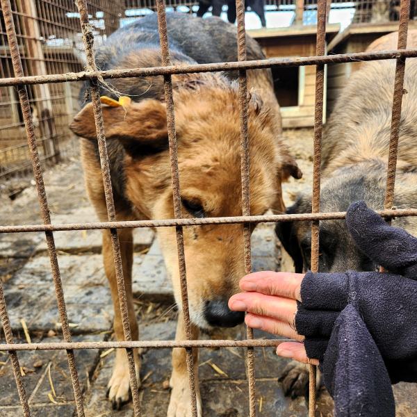 Der freundliche, besonnene AMANI nahm neugierig Kontakt mit uns auf und ließ sich mit Streicheleinheiten und Leckerchen verwöhnen. Die seltene Aufmerksamkeit quittierte der mit freudigem Schwanzwedeln. Dabei war er sehr höflich und blieb geduldig in der 2. Reihe, abwartend bis er an die Reihe kam. AMANI teilt sich den Kennel mit einem kräftigen Rüden, der Futterneid zeigt, was vermutlich der Grund ist, weshalb er aktuell zu dünn ist. AMANIS rechtes Vorderbein ist etwas krumm, vermutlich ein alter Bruch, der schlecht zusammengewachsen ist. Dies schränkt ihn aber in keinster Weise in seiner Mobilität ein. Ein ganz toller, sanfter Hund, der uns mit seiner vorsichtigen Art begeistert hat!