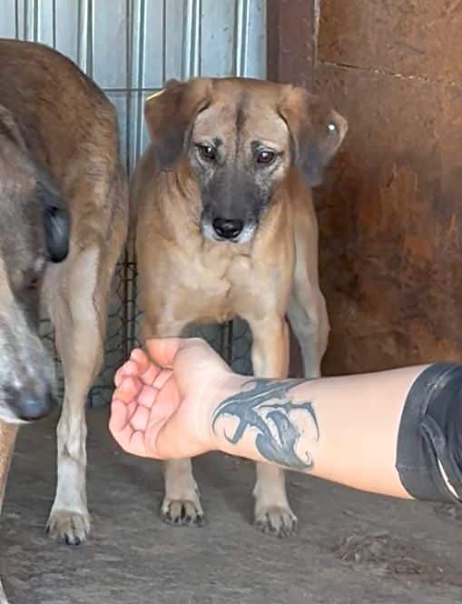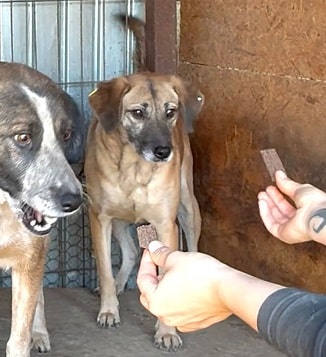 Die etwas scheue Hündin war leider für uns nicht anfassbar, aber dazu bereit Leckerchen vom Boden anzunehmen. Für mehr fehlte ihr leider der Mut. Mit etwas Geduld und Zeit würde sie vermutlich entsprechend auftauen, da sie uns interessiert folgte, als wir den Kennel verlassen hatten.