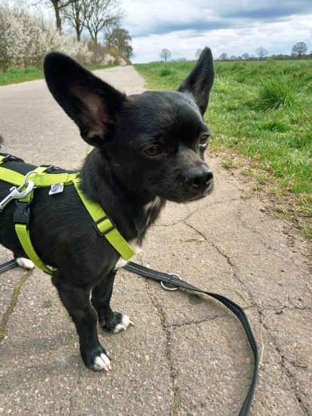 Dieser charmante Chihuahua-Mix hat es faustdick hinter den Ohren-im allerbesten Sinne! AMIGO ist ein fröhlicher, offener kleiner Kerl, der die Welt mit neugierigen Augen entdeckt und dabei einfach jeden um den Finger (oder besser gesagt: um die Pfote) wickelt.