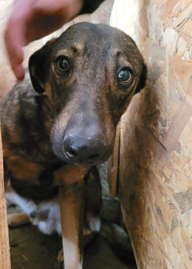 ANGUS hat sich bei unserem Besuch leider eher im Hintergrund gehalten. Dem hübschen und zarten Hundejungen merkt man an, dass das Shelterleben und der fehlende Menschenkontakt ihre Spuren hinterlassen haben. Das Streicheln wirkte nach einiger Zeit ein wenig beruhigend auf ihn. Wir wünschen uns eine schnelle Ausreise für ihn – er ist sehr verträglich in der gemischten Gruppe.