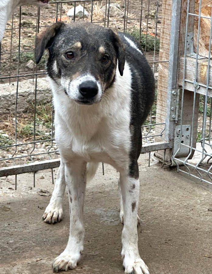 ANOUR hat sich bei unserem Besuch zurückhaltend, aber dennoch sehr neugierig gezeigt. Der hübsche Rüde hat leider bisher nichts anderes als das Shelter-Leben kennenlernen dürfen. In seiner Gruppe ist er grundsätzlich sehr verträglich, jedoch konnten wir beobachten, dass er immer wieder mal angegangen wird. Auch wenn ANOUR im ersten Moment recht schüchtern wirkt, sind wir sicher, dass er in einem Zuhause gut auftauen und ein toller Begleiter werden kann. Wenn wir außerhalb des Kennels sind, steht er direkt am Gitter und nimmt Leckerlis aus der Hand. Wir wünschen uns für den jungen Hund so sehr ein liebevolles Zuhause.