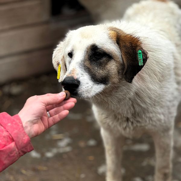 | Wesen & Zutraulichkeit (Character & Trustworthiness) | freundlich (friendly), neugierig (curious), vorsichtig anfassbar (carefully touchable), nimmt Leckerchen (takes goodies), letzter Vertrauensschritt fehlt (last step of confidence is missing), benötigt Eingewöhnungszeit (takes time to settle in), unsicher (insecure), braucht Zweithund (needs second dog) |
