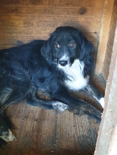lag nur in der Hütte und traute sich nicht raus, vermutlich, weil der Kennel so klein war und er das unterste Glied in dem Kennel mit insgesamt 3 Hunden ist