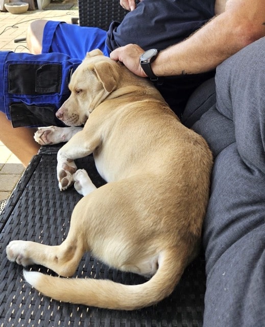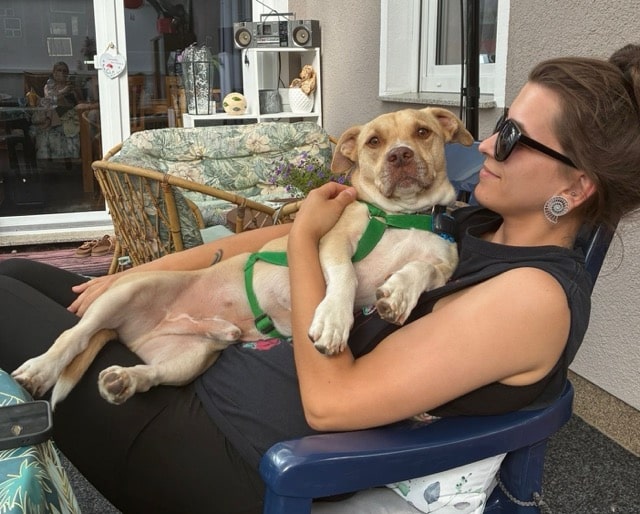 Er liebt es, draußen in der Sonne zu dösen, ist in der Wohnung angenehm ruhig und ein entspannter Begleiter im Alltag. Das Zusammenleben mit ihm macht einfach Spaß. Er ist ein absoluter Langschläfer und insgesamt sehr gemütlich. Er kennt Abbruch- und Auflösungssignale und wartet auch brav auf die Futterfreigabe – sein Highlight.