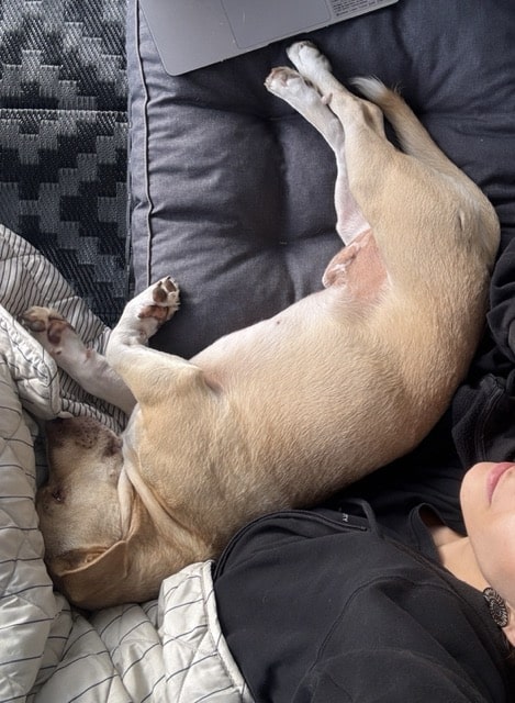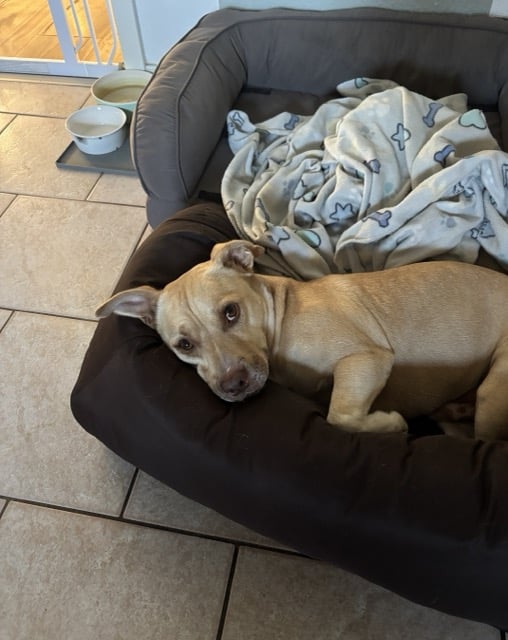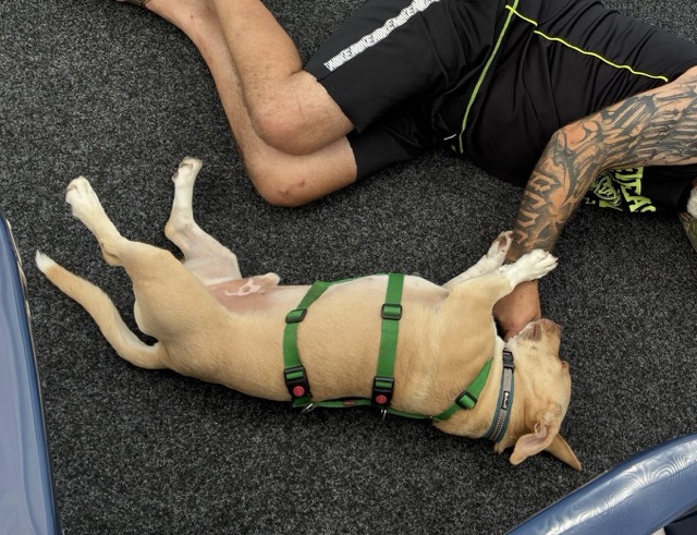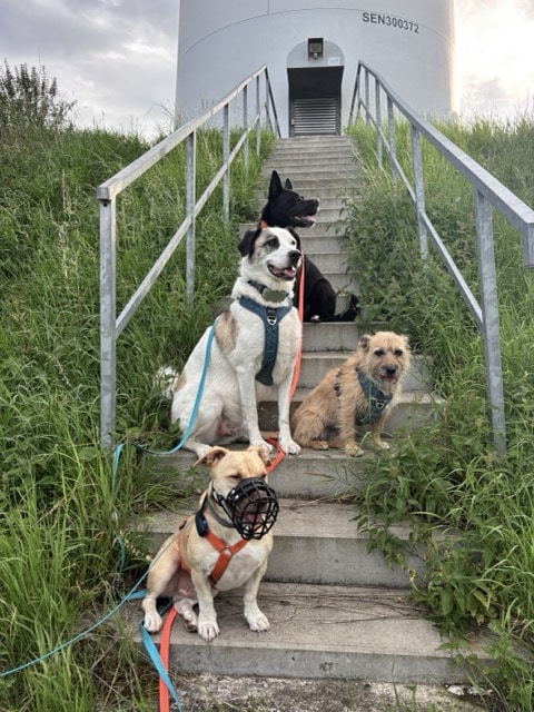 ARKON ist seeeehr futtermotiviert und dadurch super lenkbar, was das Üben deutlich erleichtert. Unterstützend sind in der Vergangenheit Hausleine und Maulkorb zum Einsatz gekommen. Aktuell kommen wir mit Management und ohne Hilfsmittel super zurecht. Platzzuweisungen nimmt ARKON gut an – in seinem Körbchen oder seiner Hundebox kommt er schnell zur Ruhe und kann auch problemlos einige Stunden allein bleiben.