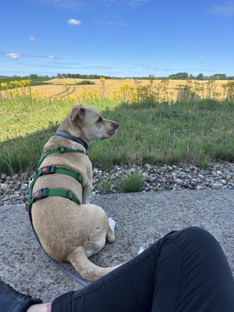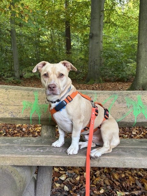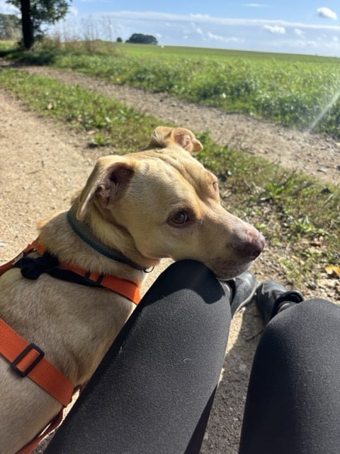 Autofahren findet er ganz toll und meistert es souverän und gelassen – auch über mehrere Stunden. Er begleitet seine Pflegemama regelmäßig mit zur Arbeit und hat auch schon mehrere Hotel-Aufenthalte prima mitgemacht. Draußen ist er sowohl an der kurzen als auch an der Schleppleine gut führbar und orientiert sich an seinem Menschen. Seinen Frust durch Reize wie z.B. Sichtung von Wild oder fremden Hunden kann er – mit dem richtigen Management und unter gewissen Bedingungen – immer besser regulieren. Man merkt jedoch, dass es ihn noch stresst und aufregt. Wir arbeiten fleißig daran, dass er in solchen Situationen souveräner und gelassener wird.