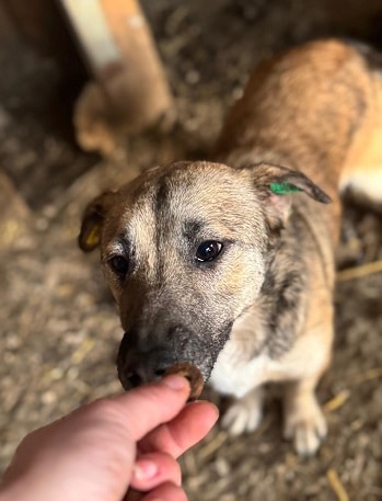 Die süße Armelle ist aufgetaut und freute sich über unseren Besuch. Sie war ständig in unserer Nähe und nahm unsere Leckerlies gerne aus der Hand. Dabei konnten wir sie leicht an der Schnauze berühren. In einer Ecke des Kennels konnten wir sie dann auch überall anfassen, dies scheint sie nicht gewöhnt zu sein, blieb jedoch jederzeit defensiv. Sie sollte nun endlich die Chance haben, auszureisen. In ihrem eigenen Zuhause wird sie sicherlich weiter auftauen und eine treue Begleiterin werden.
