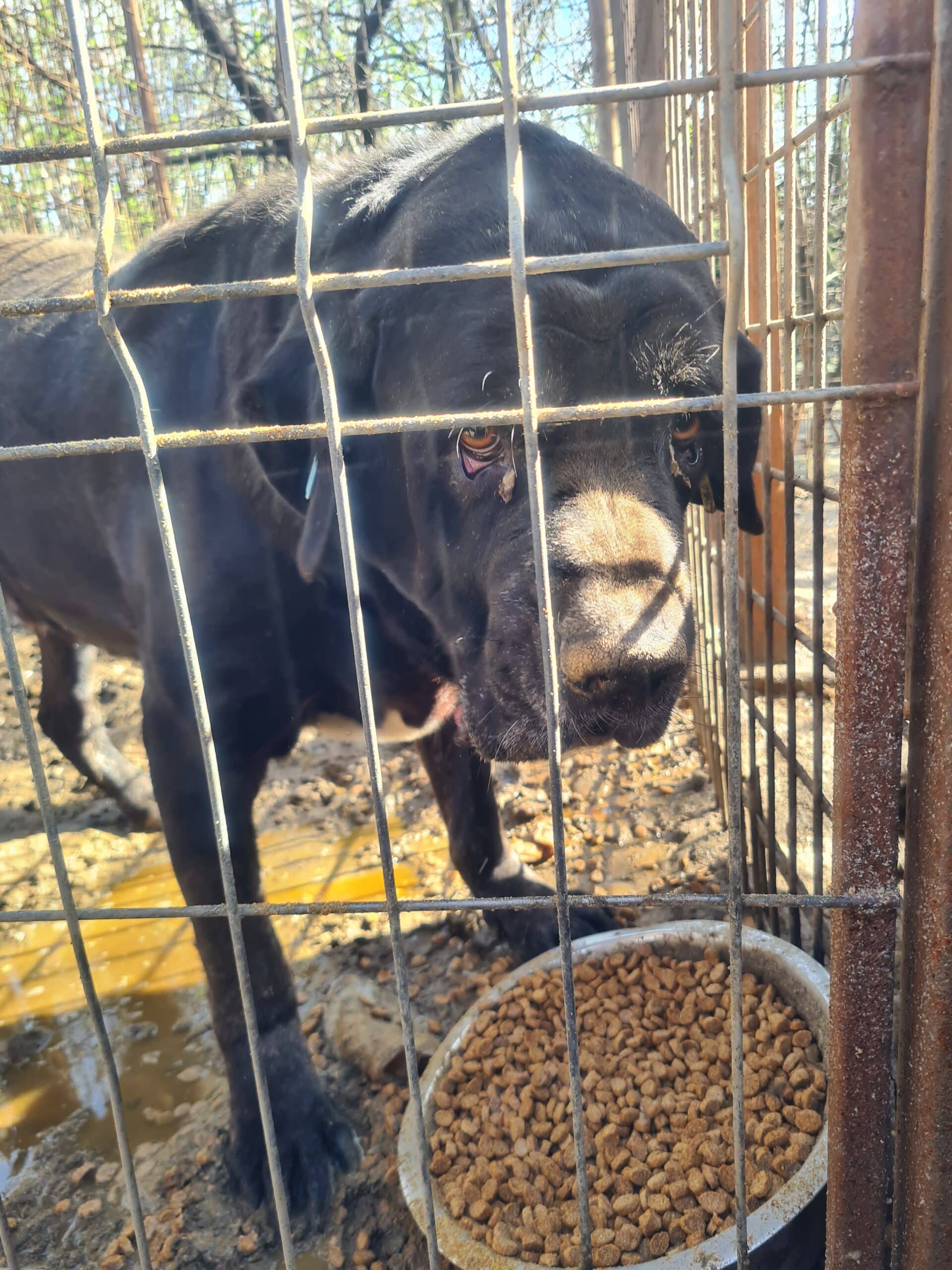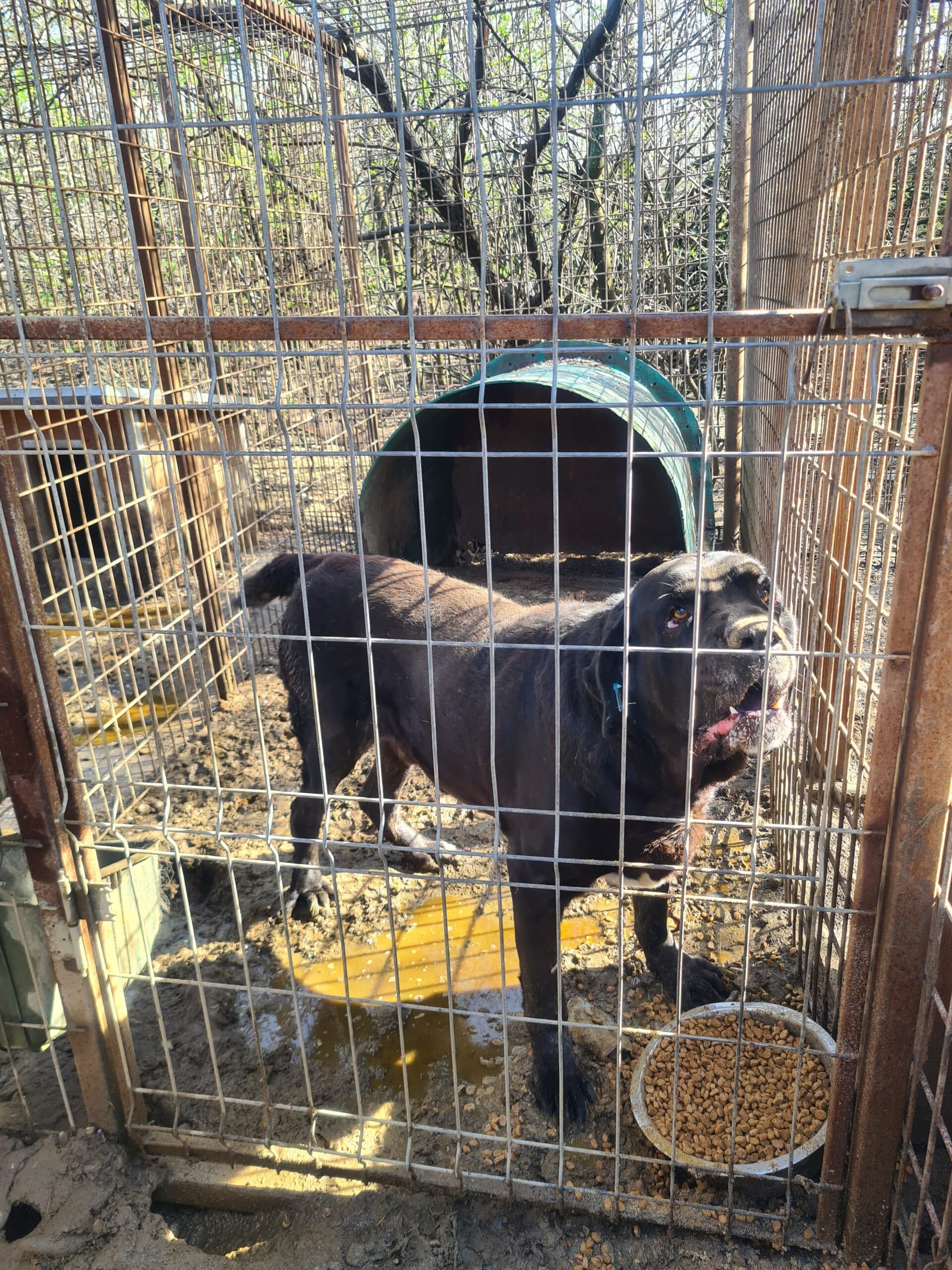 Der stattliche ARTANIO sitzt in einem winzigen Kennel. Er kam recht schwerfällig aus dem kleinen Tunnel, der ihm als Unterschlupf dienen soll, und bellte uns dauerhaft an. Da an der Ecke des Eingangs direkt der Napf steht, wissen wir nicht genau, ob er diesen verteidigen wollte oder uns einfach als Eindringlinge ansah.