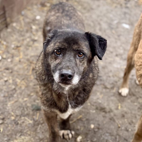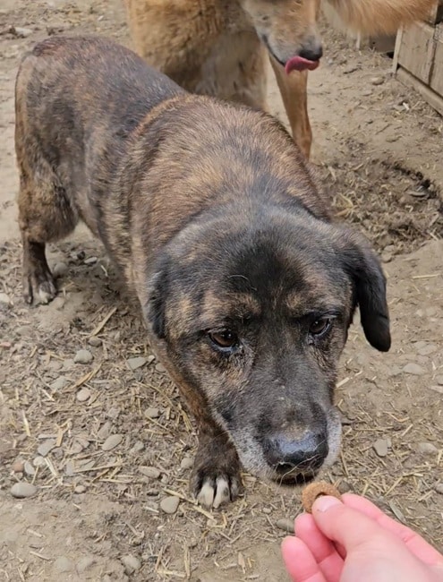Arthus ist mittlerweile seit 8 Jahren in Bucov. Fast sein ganzes Leben hat er hinter Gittern auf winzigen Quadratmetern verbracht. Man sieht ihm an, dass er alt geworden ist. Trotz des fehlenden Menschenkontakts war er von Beginn unseres Besuchs in unserer Nähe und nahm die Leckerlies sehr gerne aus der Hand. Dabei konnten wir ihn leicht an der Schnauze berühren. Für mehr fehlt ihm noch der Mut. Wir wünschen uns für Arthus endlich ein eigenes Zuhause, wo er auf seine alten Tage zur Ruhe kommen und ein weiches Körbchen zum Schlafen haben kann.