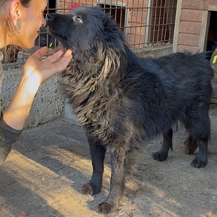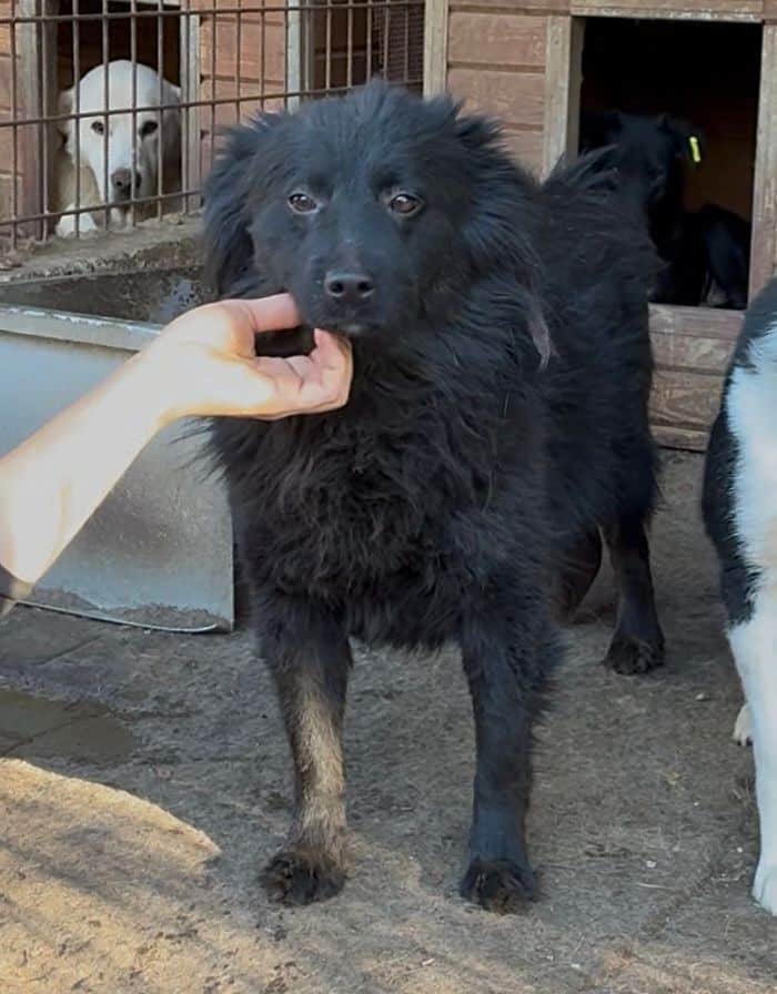 Arturo ist wirklich bezaubernd. Er freute sich über unseren Besuch und war der Mutigste in seiner Gruppe. Die mitgebrachten Leckerlies brachte er in den Futtertrog, um sie dort zu fressen. Wir konnten ihn dort auch überall streicheln. Er genoss es und pfötelte ganz vorsichtig nach uns. Sein Fell ist leider weiterhin verfilzt. Der süße Kerl sollte nun endlich die Chance auf ein eigenes Zuhause haben.