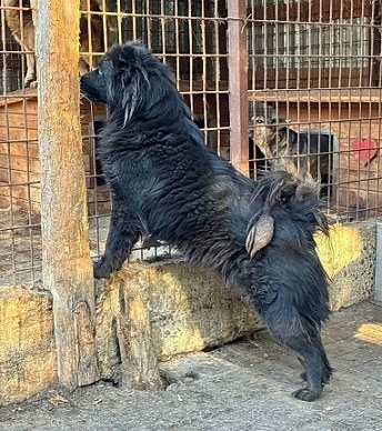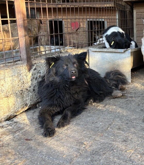 Dieser junge zurückhaltende Rüde lag überwiegend in seiner Hütte als wir den Kennel betraten. Dort ließ er sich anfassen und streicheln, konnte dies aber nicht genießen. Leckerchen nahm er aus der Hand. Als wir ihn außerhalb der Hütte leicht bedrängten, reagierte er mit einem halbherzigen Abschnappen, was auf seine Unsicherheit zurückzuführen ist. Wer sich davon nicht beeindrucken lässt, wird diesen kleinen Kerl schnell für sich gewinnen können. Er teilt sich den Kennel mit vier weiteren Rüden und scheint dort verträglich.
