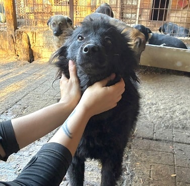 Der süße ARTURO mit seinen niedlichen spitzen Öhrchen und der tollen Kringelrute hofft seit fast einem Jahr vergeblich im Shelter auf seine Chance. Bei diesem Besuch war ARTURO der Mutigste seiner Gruppe und freute sich ganz unaufgeregt über die seltene Abwechslung. Behutsam ließ er sich streicheln und schien diese Zuwendung auch schon genießen zu können.