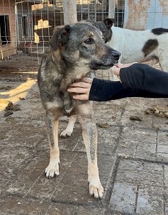 Auch bei diesem Besuch war er der Mutigste seines Kennels und freute sich über die seltene Abwechslung. Gern nahm er die Leckerlie aus der Hand und ließ sich dabei behutsam am Hals und an der Brust streicheln. Ein großer Schritt für den sensiblen ASCO – hat er die Nähe zu uns Menschen doch nur als Welpe kennengelernt und sich in all den Jahren danach immer zögerlich gezeigt. Wir hoffen sehr, dass sein Mut nun endlich mit einer Ausreisemöglichkeit belohnt wird. Wir wünschen dem verträglichen ASCO, dass er von verständigen Menschen gesehen und an die Pfote genommen wird, um ihn an das Zusammenleben auf der Sonnenseite heranzuführen – damit er wenigstens die zweite Hälfte seines Lebens in Geborgenheit verbringen darf. Ein netter Ersthund würde ihm sicher sehr helfen. Der Shelter soll bitte nicht seine Endstation sein.