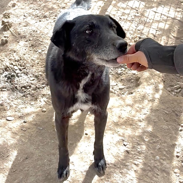 ASTOR kam sofort aus der Hütte und nahm Leckerlie aus der Hand. Er ist aufgeschlossen und neugierig.