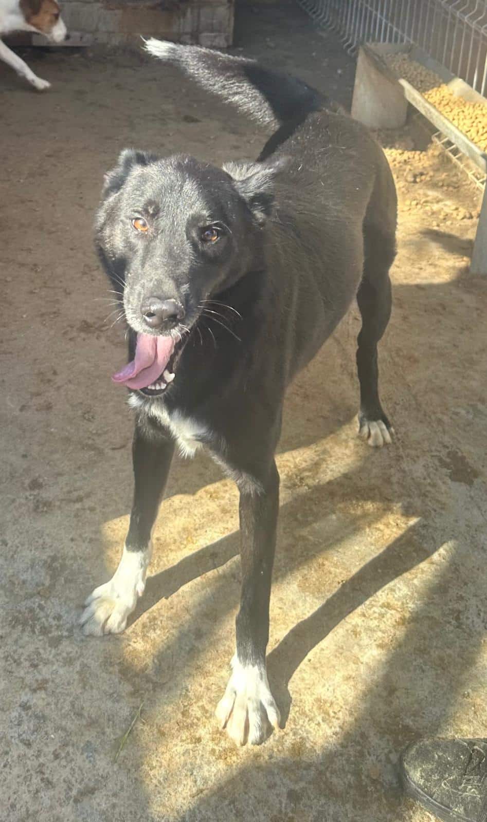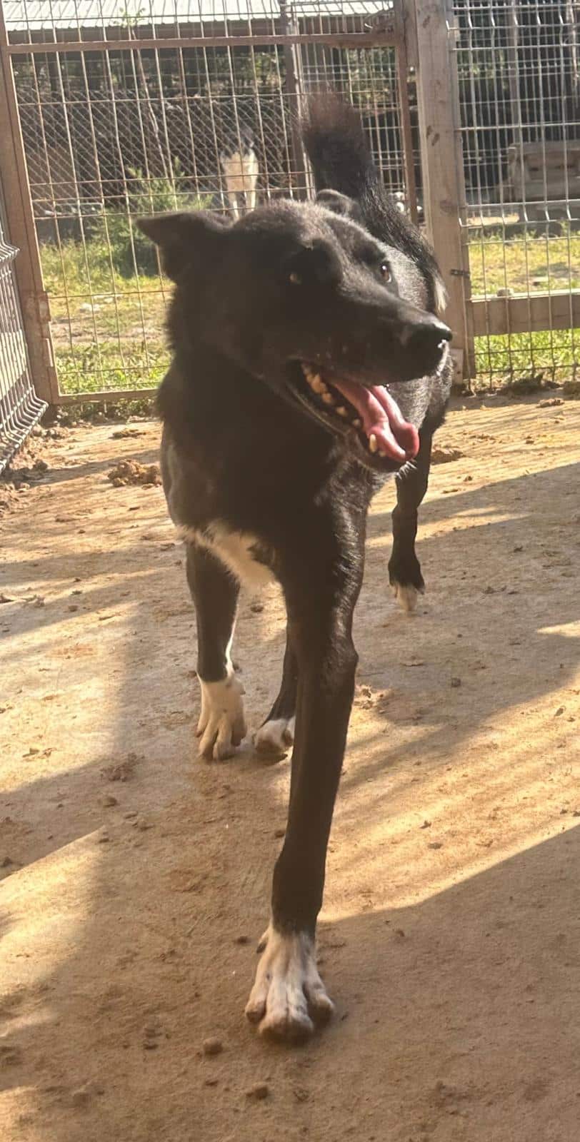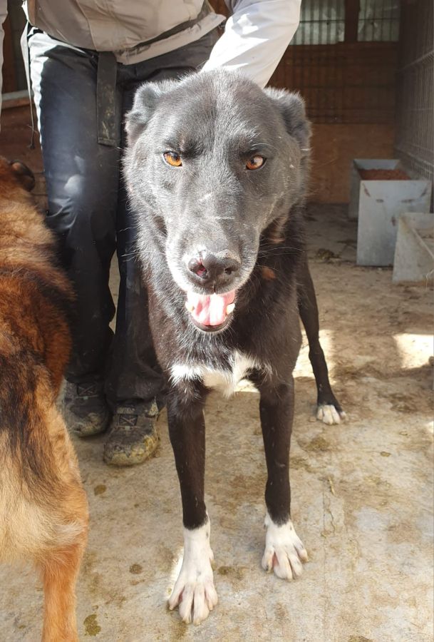 Der junge Rüde ist ausgesprochen freundlich und sehr nett. Er ist in der Hundegruppe auch sehr verträglich. Mit uns nahm er sofort und recht gut Kontakt auf und war auch gleich zum spielen und rumkaspern bereit. Er zeigt sich im Kontakt recht agil. Wir könnten ihn uns bei sportlichen Menschen vorstellen oder bei Menschen, die gerne aktiver sein möchten. Kinder sollten definitiv schon standfest und etwas älter sein, da der junge Rüde schon sehr aktiv ist und auch groß. Wir wünschen uns für ihn einen Rasseerfahrenen und kompetenten Platz, wo er auch gefördert wird.