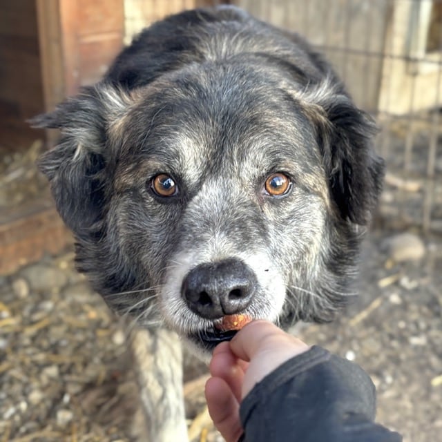 Avalon sitzt schon seit 2018 in Campina, mehr als die Hälfte seines Lebens in einem winzigen Zwinger ohne Kontakt zu Menschen und Aussenwelt. Bei unserem Besuch war er interessiert und neugierig und nahm die Leckerli aus der Hand. Zum Anfassen fehlt ihm leider, aufgrund der fehlenden Erfahrung mit Menschen, noch der Mut.