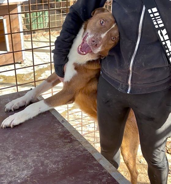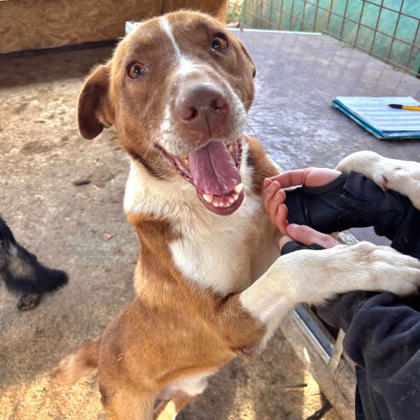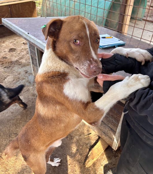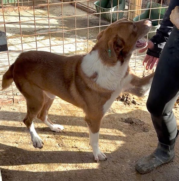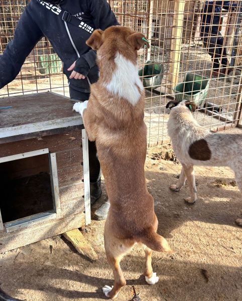 Dieser stattliche und hübsche Rüde fällt direkt durch seine Erscheinung auf: tolles rotbraunes Fell und eine niedliche kurze Rute zeichnen ihn aus. Badi ist ganz neu im riesigen Shelter und zeigte sich uns gegenüber direkt sehr offen und freundlich. Da in die Nachbarkennel auch gerade neue Hunde gesetzt und Bauarbeiten an den Kenneln durchgeführt wurden, war die Aufregung groß und es herrschte etwas Dynamik im Kennel. In seiner frisch zusammengesetzten, gemischten Gruppe verhält Badi sich generell verträglich und trägt etwaige Diskussionen mit anderen Rüden souverän aus. Neugierig beobachtete der liebe Bub das Geschehen um ihn herum und kam immer wieder zu uns, um etwas Aufmerksamkeit zu erhaschen. Gern ließ er sich streicheln und war ganz aus dem Häuschen über die seltene Zuwendung. Für den lieben Badi hoffen wir, dass er schon bald von verständigen Menschen gesehen wird und auf der Sonnenseite losleben darf.