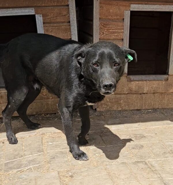 Dieser freundliche Rüde wartete geduldig in der zweiten Reihe während wir uns mit der Chefin im Kennel beschäftigten. Als wir uns ihm zuwandten, nahm er gerne unsere Leckerchen und kam neugierig zu uns. Anfassen konnten wir ihn nicht. Seine Unsicherheit überspielte er mit Spielaufforderungen. Balthazar hat mehrere abheilende und auch neue, frische Bisswunden. Ein netter Kerl, der in einer anderen Umgebung sicher rasch noch gut auftauen würde.