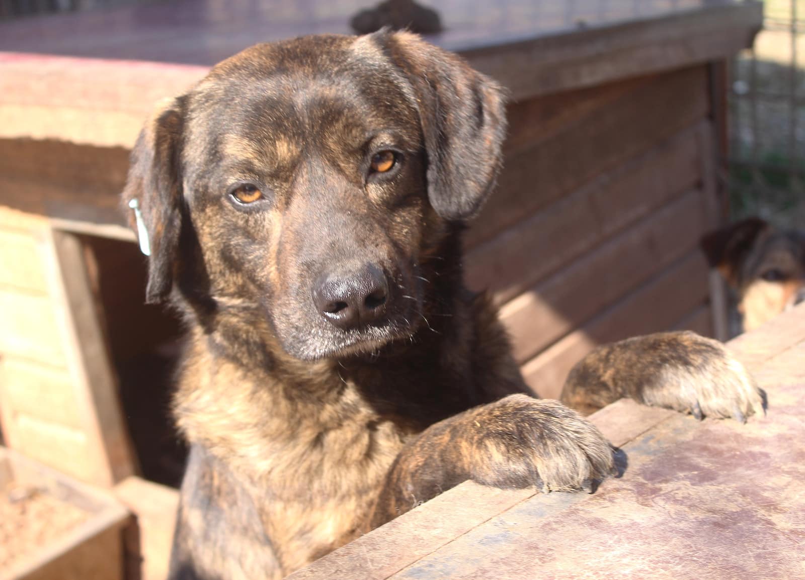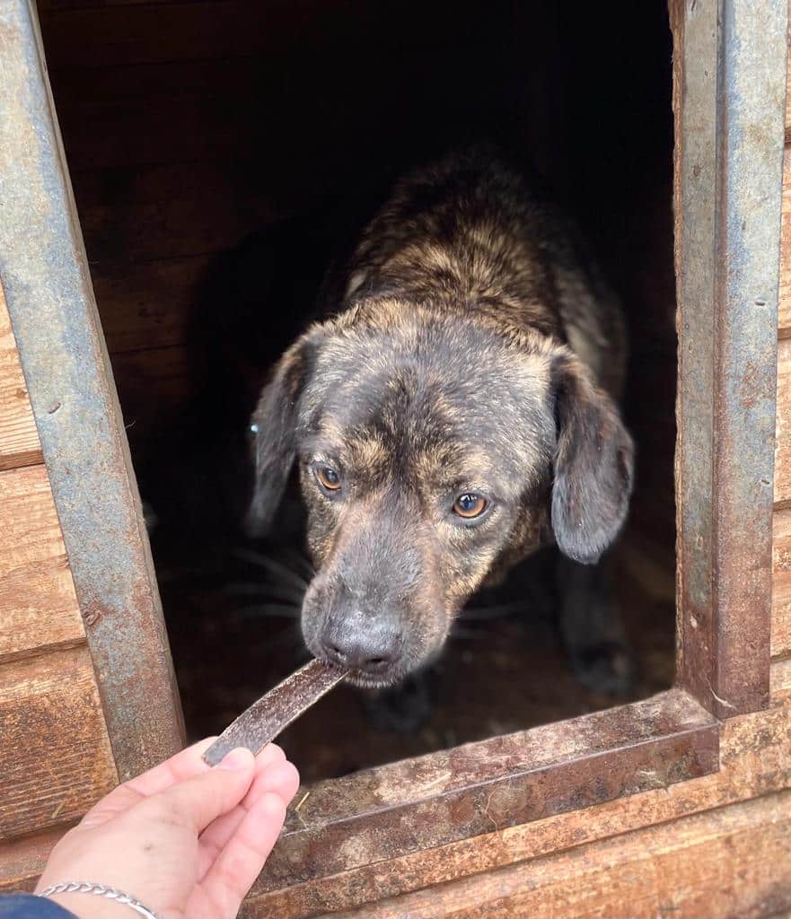 Der wunderschöne BANDIT muss inzwischen auch schon bald 3 Jahre im Shelter ausharren. Er ist weiterhin neugierig, kommt von sich aus zu uns und nimmt gerne Leckerlies aus der Hand. Wir konnten ihn vorsichtig an der Schnauze berühren, richtig streicheln war noch nicht möglich, dabei wich er zurück. Wir denken aber, dass er in einem eigenen Zuhause – mit nettem Ersthund an der Seite – wahrscheinlich gut auftauen würde.