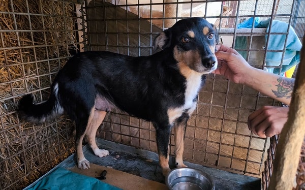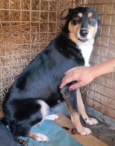 Die nette Hündin saß in einem Käfig in der Scheune. Sie scheint neu in Campina zu sein (Ende Oktober 2023) und es muss erst nach einem geeigneten Platz in einem der Kennel gesucht werden.
