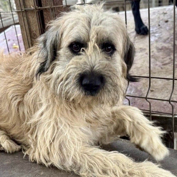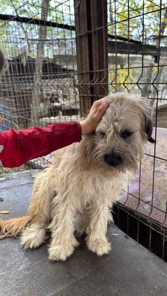 Dieser wuschelige Geselle zeigt sich anfangs noch etwas zurückhaltend. Doch sobald er merkt, dass man es gut mit ihm meint, taut er schnell auf und tänzelt freudig auf seiner Hütte umher. Streicheleinheiten fand er klasse, sein Schwänzchen wedelte unaufhörlich vor Freude. Ein wirklich toller Hund, der mit seinem liebenswerten Wesen hoffentlich viele Herzen in Sturm erobern wird.