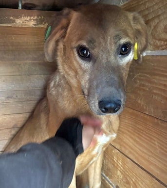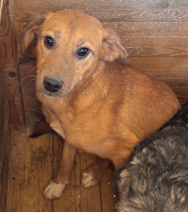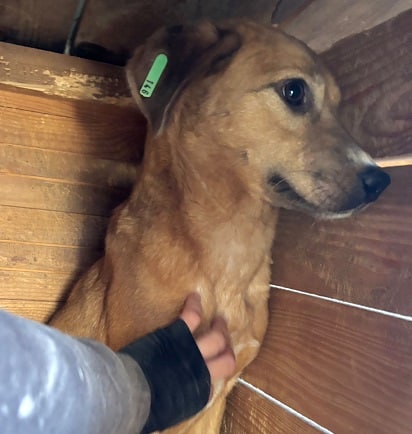 In einem gemischten Kennel lebt diese kleine hübsche rehbraune Hündin mit ihren weißen Pfoten im täglichen Stress mit Angst ums Überleben. Ein dominanter Rüder hat alles unter Kontrolle, darum heißt es für Basia nur nicht auffallen. Sie liegt die meiste Zeit zurückgezogen ihn einer Hütte. Menschenkontakt fehlt ihr fast ganz. Wir konnten sie vorsichtig aus der Hütte heben und auf den Arm nehmen und streicheln. Viel Gutes hat sie in ihrem jungen Leben bis jetzt nicht gehabt. Basia wird vermutlich Zeit brauchen, bis sie auftauen und Vertrauen zum Menschen aufbauen kann.