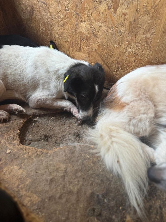 Die zierliche BAYALA zeigt sich noch sehr überfordert und beeindruckt vom Shelterleben. Leider ist sie zu dünn und leidet unter Hautproblemen, die ihr zu schaffen machen. Trotz ihrer Unsicherheit konnten wir sie in der Hütte unter Bedrängung vorsichtig anfassen. Dabei blieb sie defensiv und zeigte kein Abwehrverhalten, genießen konnte sie es jedoch nicht. An unseren Leckerchen zeigte sie kein Interesse.