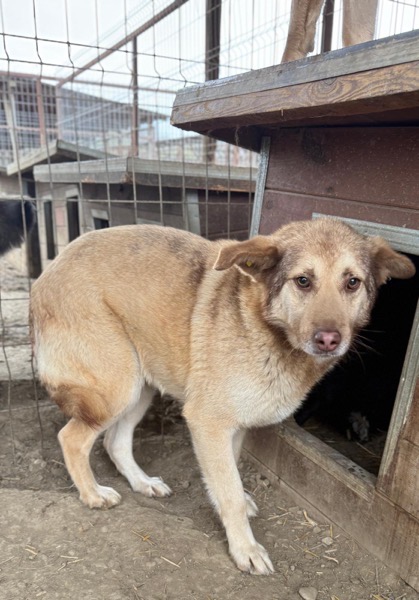 Diesmal trafen wir BELLADONNA draußen an. Sie zeigt sich weiterhin etwas scheu. Zweithund wäre ein Muss. Sie wirkt sehr verträglich. Anfassen konnten wir sie nicht und haben sie auch nicht bedrängt. Eine Verdickung am Sprunggelenk, die im Mai da war, konnten wir nicht mehr feststellen.